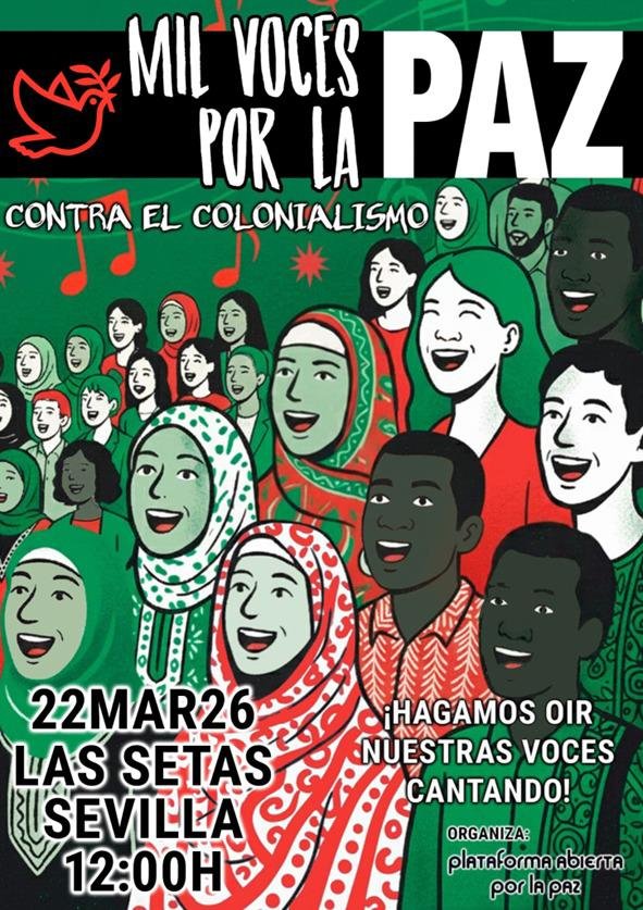 Desde la Plataforma Abierta por la Paz hacen un llamamiento a “toda la ciudadanía, colectivos y entidades sociales” para que se sumen a esta acción reivindicativa. “No es necesario tener conocimientos musicales, solo las ganas de romper el silencio y unir nuestra energía en un canto común por la justicia. Queremos que las Setas se llenen de personas comprometidas que demuestren que Sevilla no es indiferente ante el colonialismo y la guerra; vuestra presencia y voz son el motor de este mensaje de esperanza”, explican desde la organización.