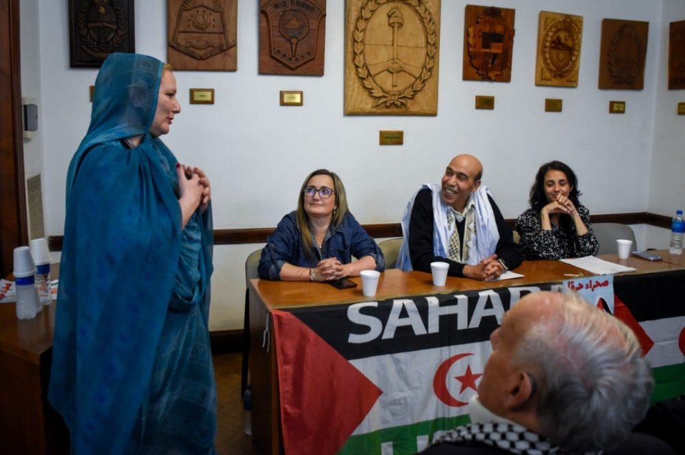 “Es emotivo y emocionante ver que hay personas y organizaciones que vienen apoyando esta causa desde los años 70. Argelia ha estado apoyando al pueblo saharaui desde el primer momento, como lo ha hecho Cuba. Argelia cedió territorio para el pueblo saharaui y el pueblo cubano educó a muchos de nosotros y nosotras. No quiero dejar de aprovechar este aniversario de nuestra lucha para volver a brindar nuestro apoyo al pueblo palestino”, dijo al comenzar el acto Ali Ali Salem, del Frente Polisario, quien luego agradeció la presencia de Carlos Custer, exembajador argentino ante el Vaticano, a quien reconoció por su apoyo al pueblo saharaui.