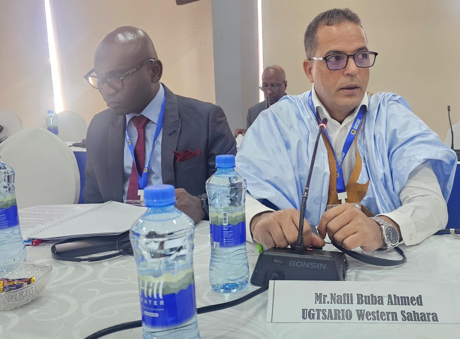 Durante los trabajos de la 46ª sesión del Consejo General de la Unidad Sindical Africana celebrada en Dar es Salaam (Tanzania), Nafei Ahmed Mohamed repasó «la compleja situación que ha dejado la ocupación marroquí en el Sáhara Occidental y el sufrimiento resultante de refugio, bloqueo y desplazamiento, que duplica la tragedia del pueblo saharaui bajo la continua ocupación marroquí».