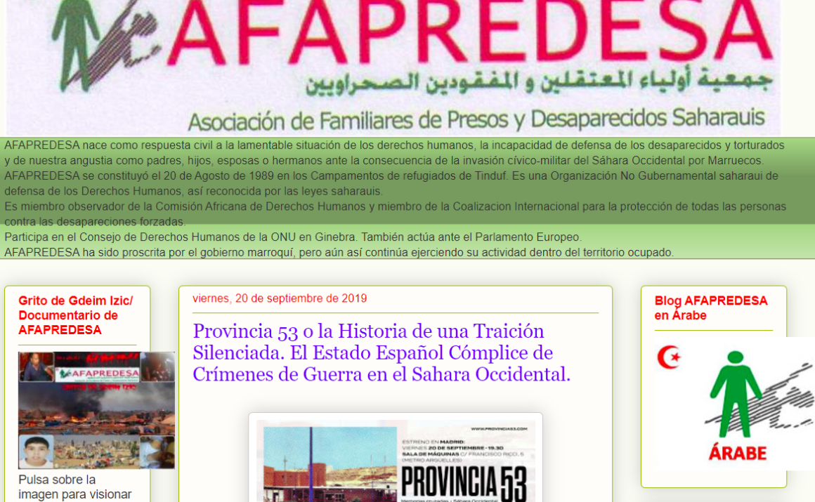 AFAPREDESA: Provincia 53. El Estado Español Cómplice de Crímenes de Guerra en el Sahara Occidental.