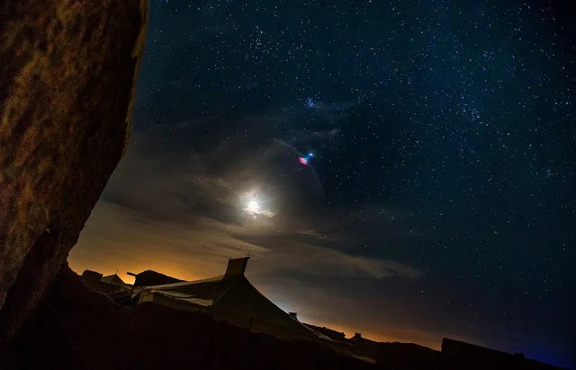 Le jour s’étire sous le drap de sa nuit, tranquillement, sans bruit. Dans la poussière de la Hamada, la prière des hommes accompagne cet enfant né de l’aube et le berce dans son refuge rouge sang. Ces hommes qui prient sont eux-mêmes réfugiés.