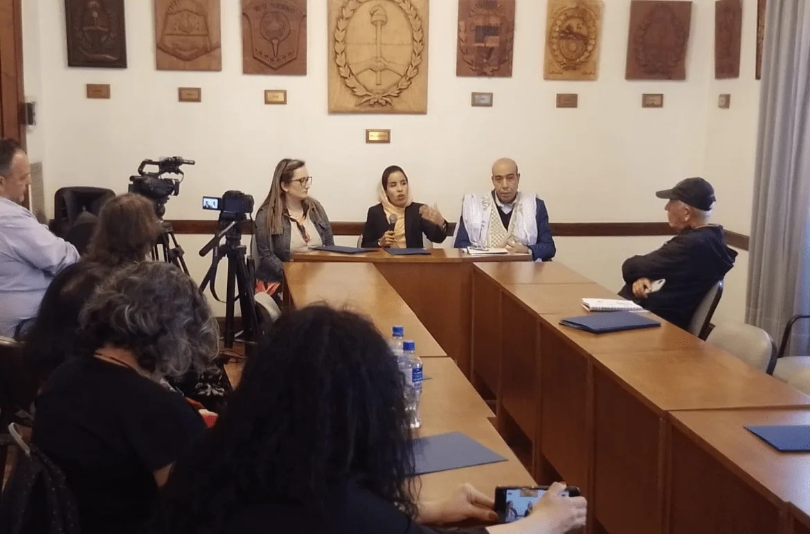 La activista brindó una conferencia de prensa sobre las violaciones a los derechos humanos que Marruecos comete contra las mujeres del Sahara Occidental.