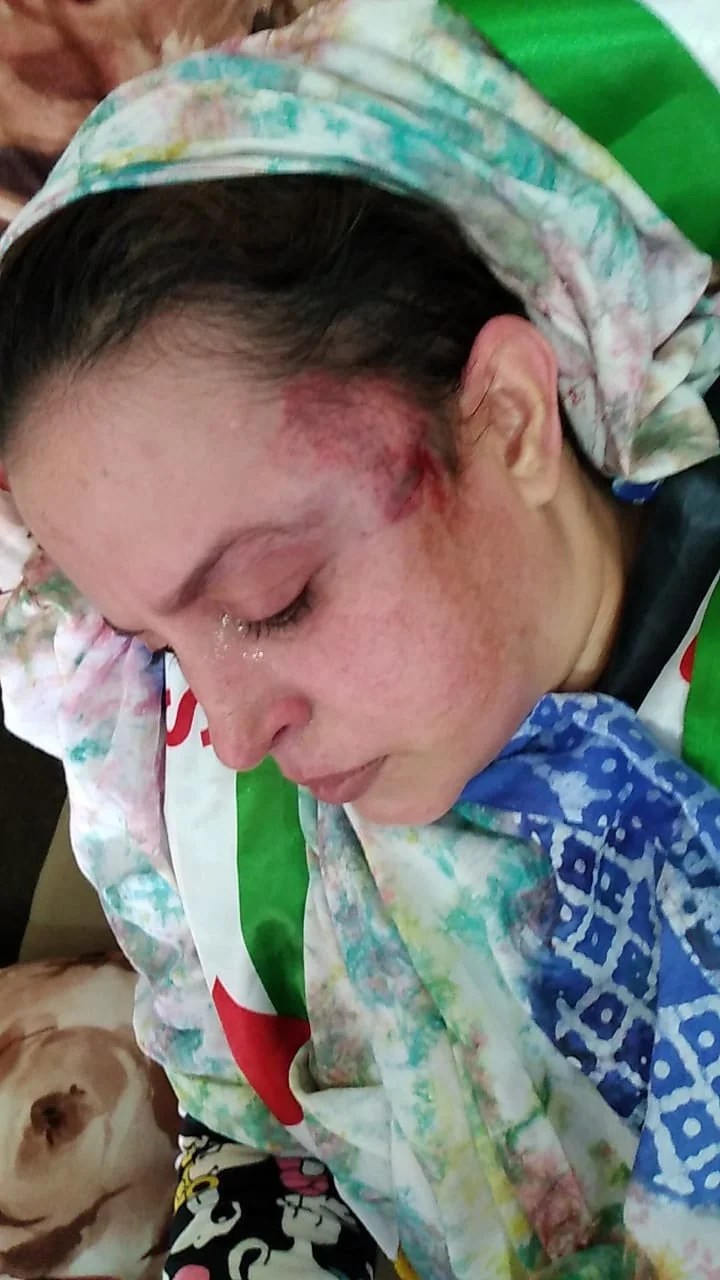 Fuentes de la ciudad ocupada informan que los agentes marroquíes Hakim Amern y su adjunto, ,Mohamed Madi, golpearon brutalmente a la activista por sus protestas pacificas y su rechazo a la ocupación marroquí en el Sahara Occidental.