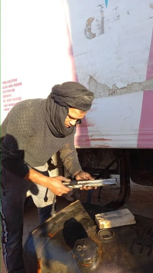 En estos días de fin de otoño ha hecho las necesarias reparaciones en las cuatro bibliotecas, duramente golpeadas por el peor clima del desierto; ha cambiado las ruedas de los bibliobuses y no ha parado hasta subsanar las averías que dificultaban su correcto rodaje por las pedregosas vías que unen las bibliotecas con las dairas.