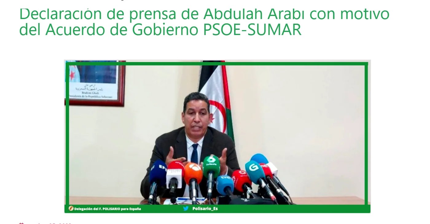 Origen: Declaración de prensa de Abdulah Arabi con motivo del Acuerdo de Gobierno PSOE-SUMAR