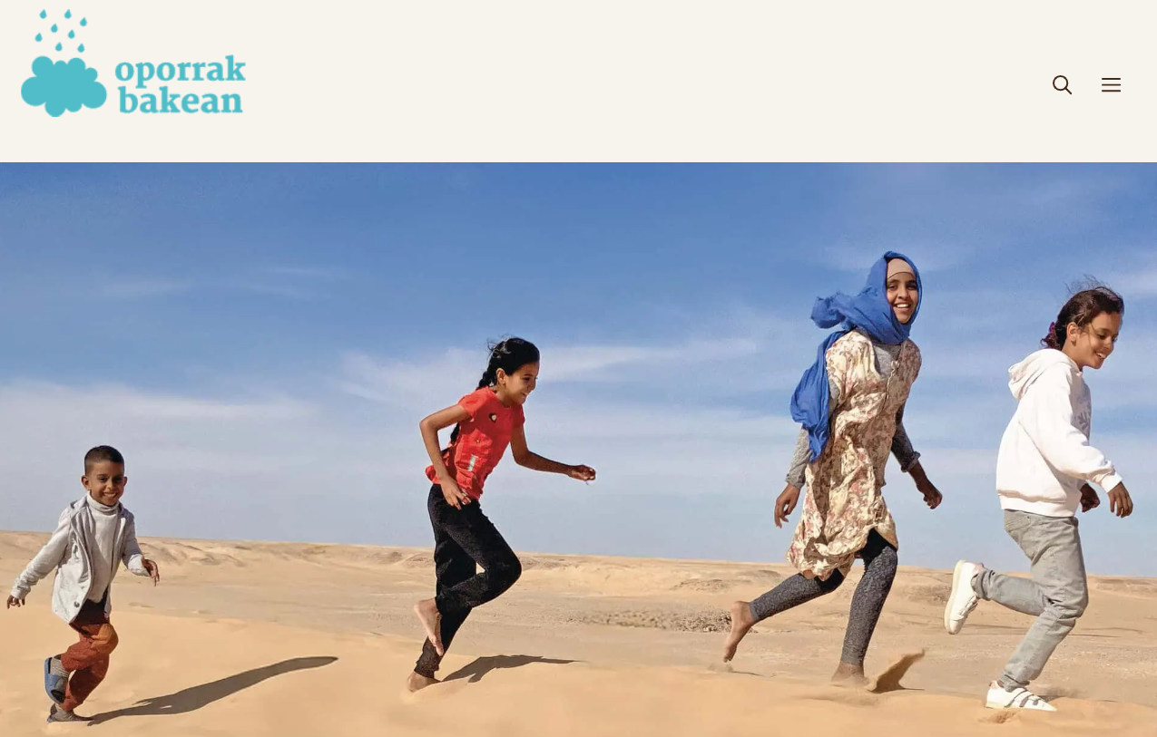 El pueblo saharaui lleva 50 años sobreviviendo en campamentos de personas refugiadas ubicados en uno de los desiertos más áridos del mundo y sin poder volver a su tierra. En estos campamentos residen 56.000 menores de 14 años y de los cuales el 30% sufre déficit de crecimiento a causa de las duras condiciones climáticas y de alimentación. Gracias a programas como “Vacaciones en Paz”, estos menores pueden vivir una vivencia significativa, creando lazos con familias vascas y fortaleciendo la relación entre ambos pueblos.