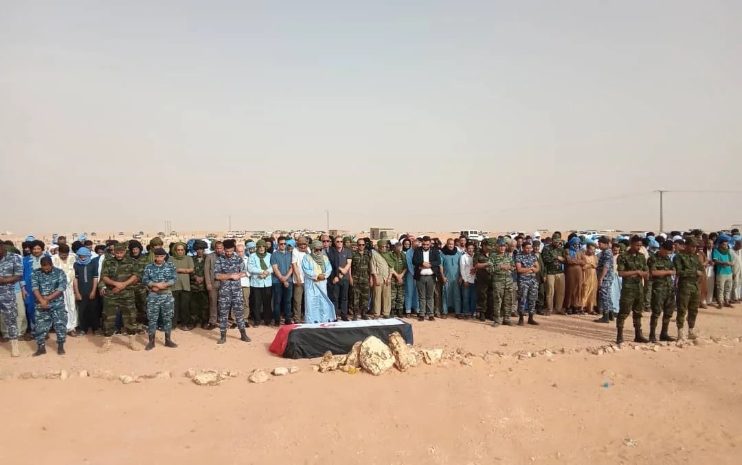 La procesión fúnebre se celebró en una ceremonia solemne, a la que asistieron el Presidente del Consejo Nacional, Hama Salama, el Primer Ministro, Bachraya Hamoudi Bayoun, el Jefe del Estado Mayor del Ejército, Mohamed El Wali Akik, y miembros del Secretariado Nacional, del Gobierno, del Consejo Nacional, del Consejo Asesor y una gran multitud de diversos organismos nacionales saharauis.