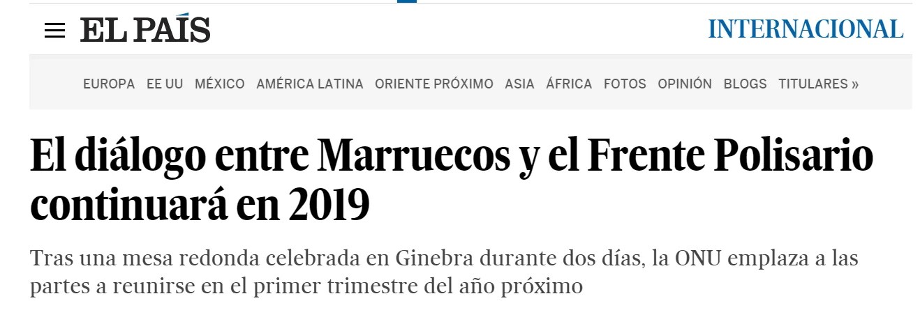 El Frente Polisario y Marruecos mantienen sus posturas sobre el Sáhara Occidental, pero continuarán dialogando durante el primer trimestre de 2019. Transcurridos seis años desde que ambas partes se sentaran en la misma mesa en Manhaset (Estados Unidos), el enviado especial de la ONU para el Sáhara Occidental, el alemán Horst Köhler, consiguió sentarlos de nuevo este miércoles y jueves en Ginebra y arrancarles un compromiso de diálogo.