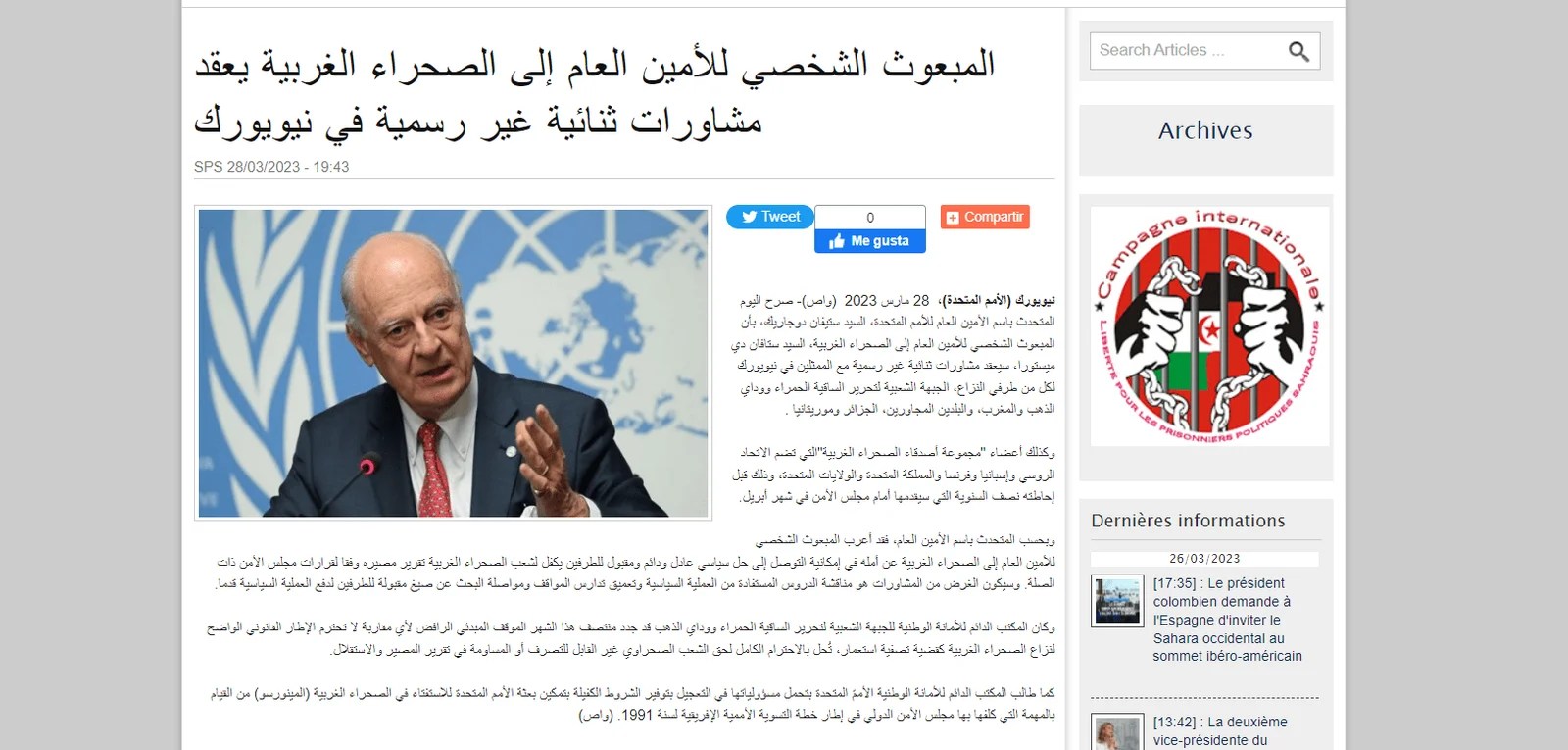 Fuente en castellano: El enviado de la ONU para el Sáhara Occidental realizará «consultas bilaterales» con el Polisario y Marruecos