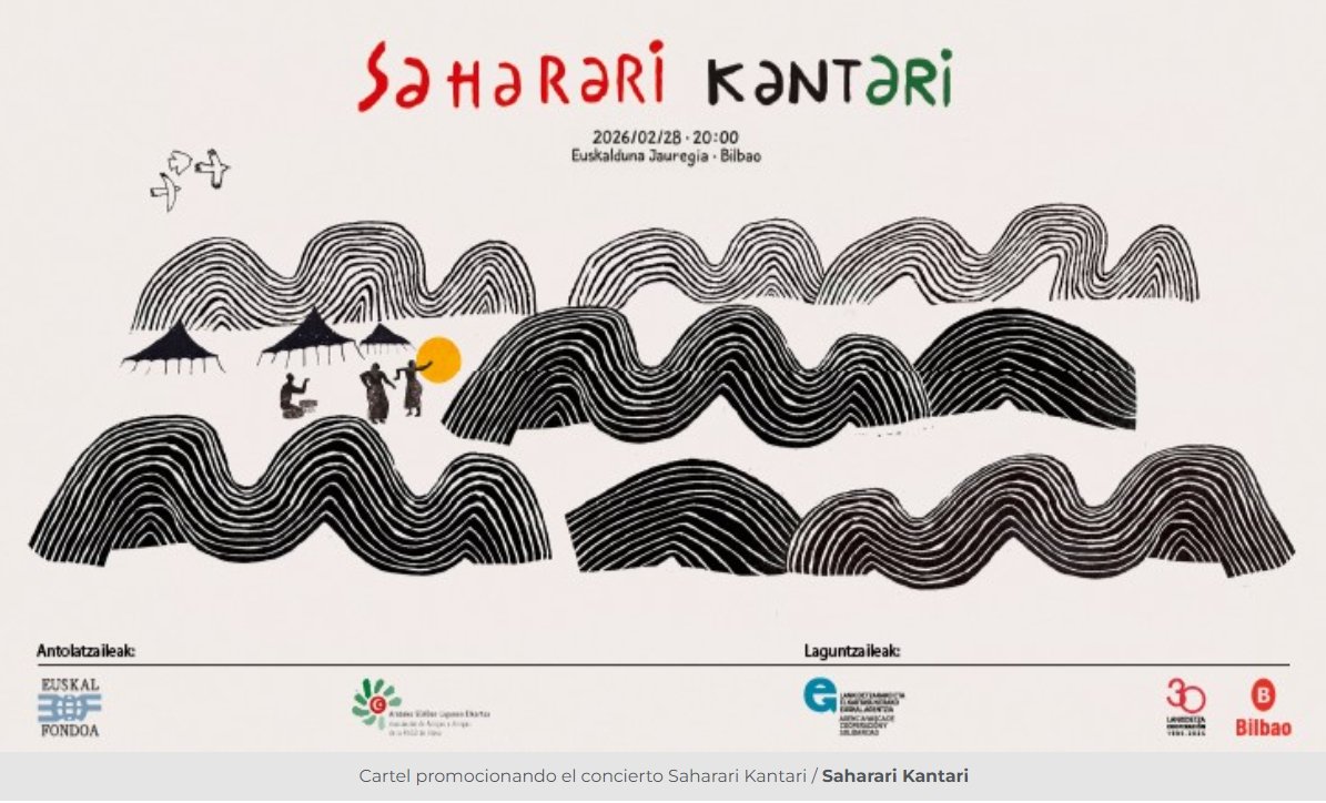 Con motivo del 50 aniversario de la proclamación de la República Árabe Saharaui Democrática, Euskal Fondoa y la Asociación de Amigos y Amigas de la RASD de Álava, con la colaboración del Ayuntamiento de Bilbao y eLankidetza, organizan este sábado 28 de febrero la gala Saharari Kantari en el Palacio Euskalduna de Bilbao.