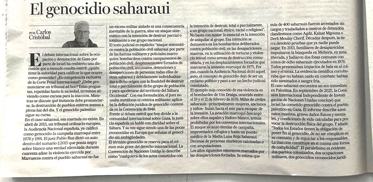 En el caso saharaui, esa coartada no existe. En abril de 2015, un tribunal ordinario europeo, la Audiencia Nacional española, ya calificó como genocidio la campaña marroquí entre 1976 y 1991. El juez Pablo Ruz dictó un auto dentro del sumario 1/2015 que ponía negro sobre blanco una verdad silenciada durante cuarenta años: la violencia ejercida por Marruecos contra el pueblo saharaui no fue un exceso militar aislado ni una consecuencia inevitable de la guerra, sino un ataque sistemático con la intención de destruir parcial o totalmente a ese grupo nacional.