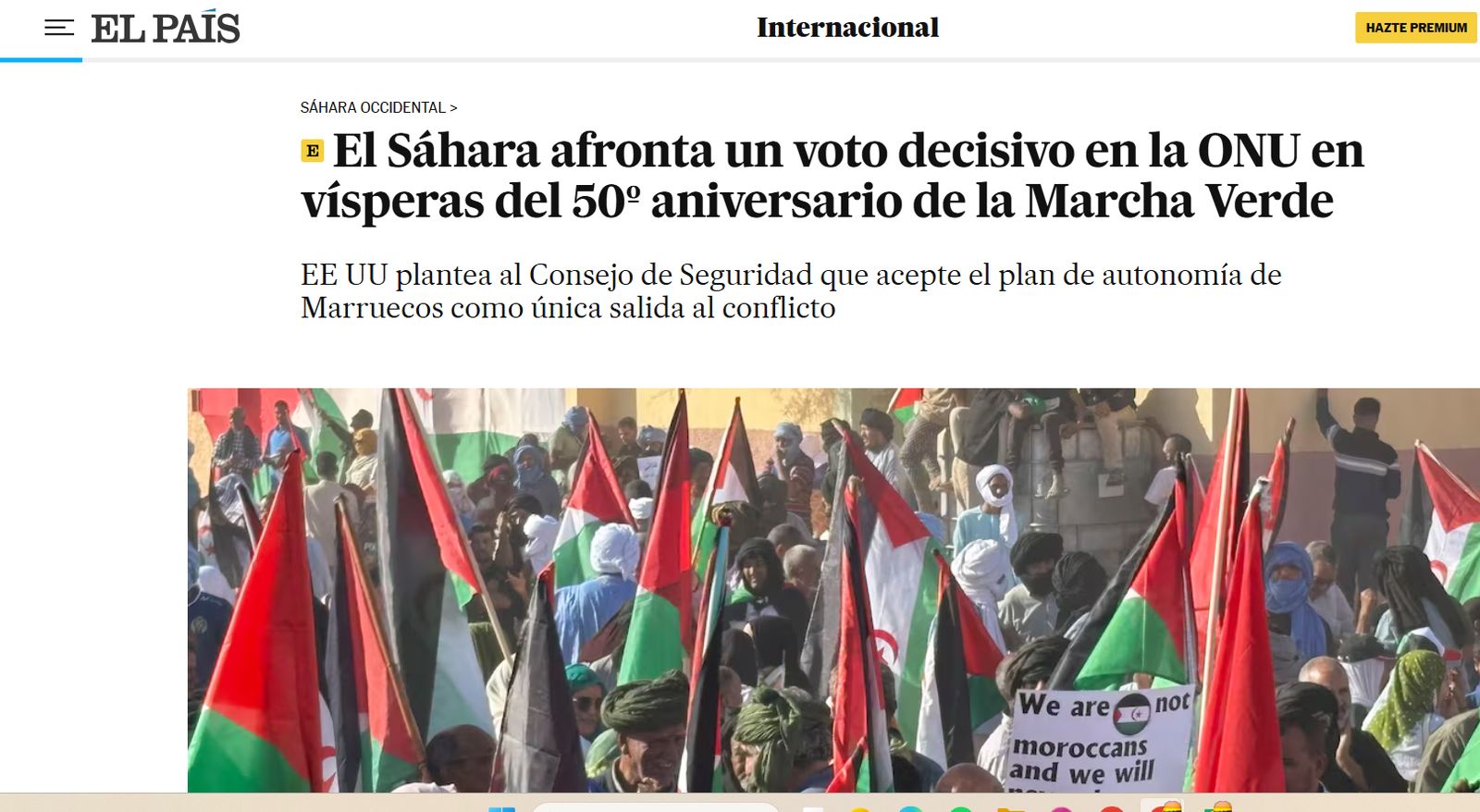 El diario El País ha publicado un artículo titulado “Tras años de olvido de la comunidad internacional, el Sáhara Occidental afronta en Naciones Unidas una votación decisiva”, que refleja con claridad el enfoque dominante en ciertos medios occidentales: la idea de que la “única salida posible” al conflicto sería la aceptación del plan marroquí de autonomía bajo soberanía de Rabat, en detrimento del derecho a la autodeterminación del pueblo saharaui, reconocido por la ONU desde hace casi medio siglo.