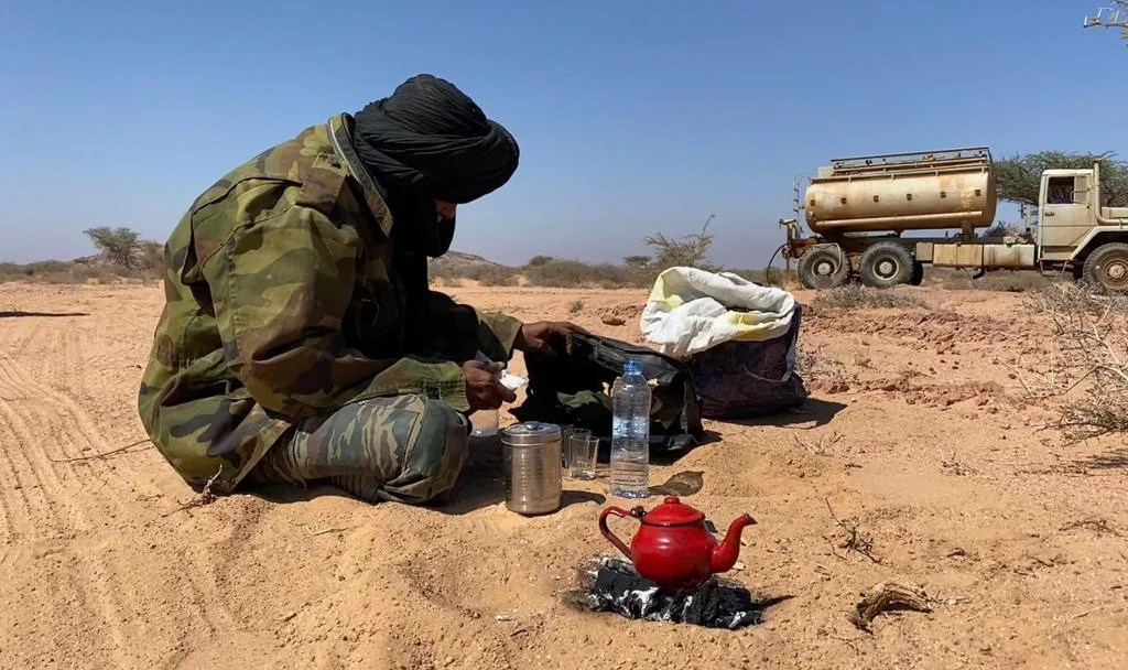 Estacionamos en una zona llamada Wein Terget en Mheiriz, a una distancia prudente del muro militar marroquí y nos sentamos con Habub, un veterano chófer de unidades del ministerio de Defensa saharaui. Conoce la región como la palma de su mano según nos dice. Nos ofrece una vaso de té: el archiconocido Té Saharaui, un ritual sagrado incluso en la guerra. Antes o después de cada ataque, los soldados saharauis sellan sus operaciones con esta infusión relajante, a pesar de que algunos no regresan a tomar el último vaso.