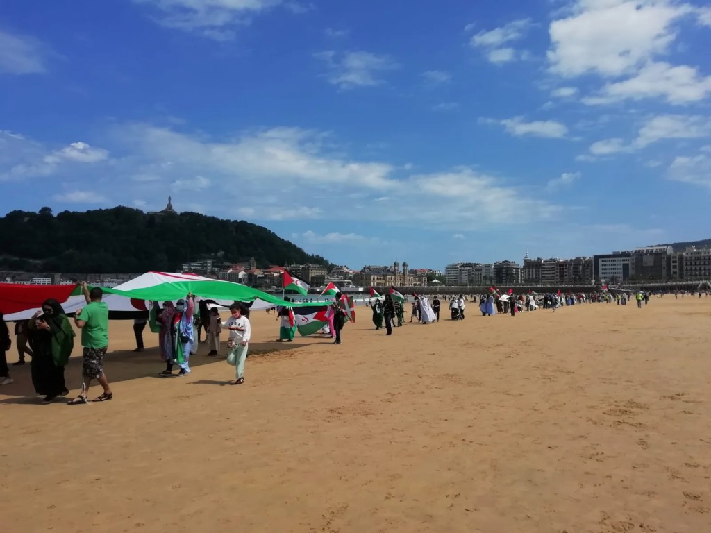 Durante más de hora y media cientos de personas han circunvalado el paseo de la Concha y su playa, convocados por asociaciones diversas de la sociedad civil, sindicatos y de amistad con la RASD, así como multitud de saharauis residentes en Gipuzkoa, dentro del programa MARCHA POR LA LIBERTAD que se desarrolla a nivel estatal.