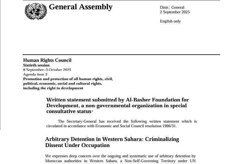 En una declaración escrita presentada en el 60º período de sesiones del Consejo de Derechos Humanos, la ONG subrayó que la detención arbitraria “sigue siendo una herramienta central en la estrategia más amplia de Marruecos para suprimir los derechos civiles y políticos saharauis, reprimir la disidencia y criminalizar la defensa pacífica de la autodeterminación”.