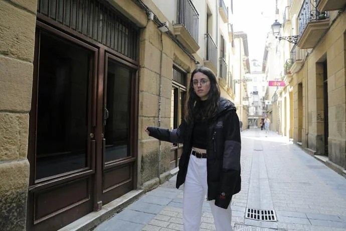 Sofía Fernández, señalando el Bar Iguana, donde tuvieron lugar los hechos Iker Azurmendi