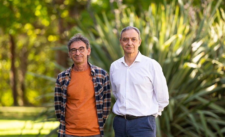 FOTO: Armando Irisarri (izq.), autor del TFG, en compañía del catedrático Fermín Mallor, que le ha dirigido el trabajo.