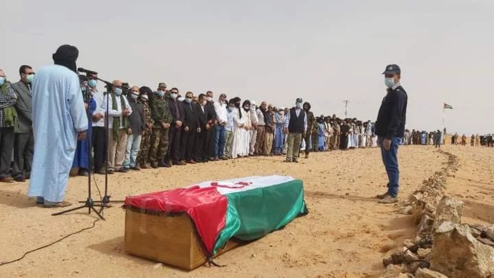 Los presentes en la ceremonia de la recepción del cuerpo de Mhamed Jadad guardaron un minuto de silencio en memora del líder saharaui, luego presentaron sus condolencias a la familia y al pueblo saharaui.