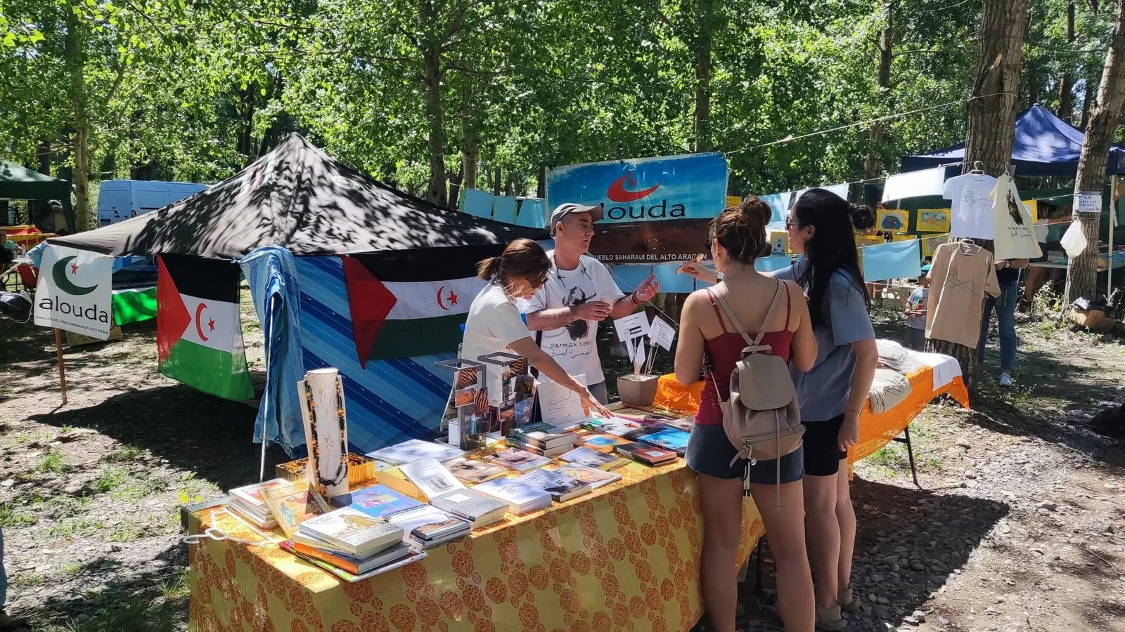 Alouda Huesca se ha desplazado a Campo para sumarse al festival y ha instalado un puesto donde ha vendido sus libros. Además, ha presentado su proyecto de poesías mediante una charla a cargo de Limam Boisha.