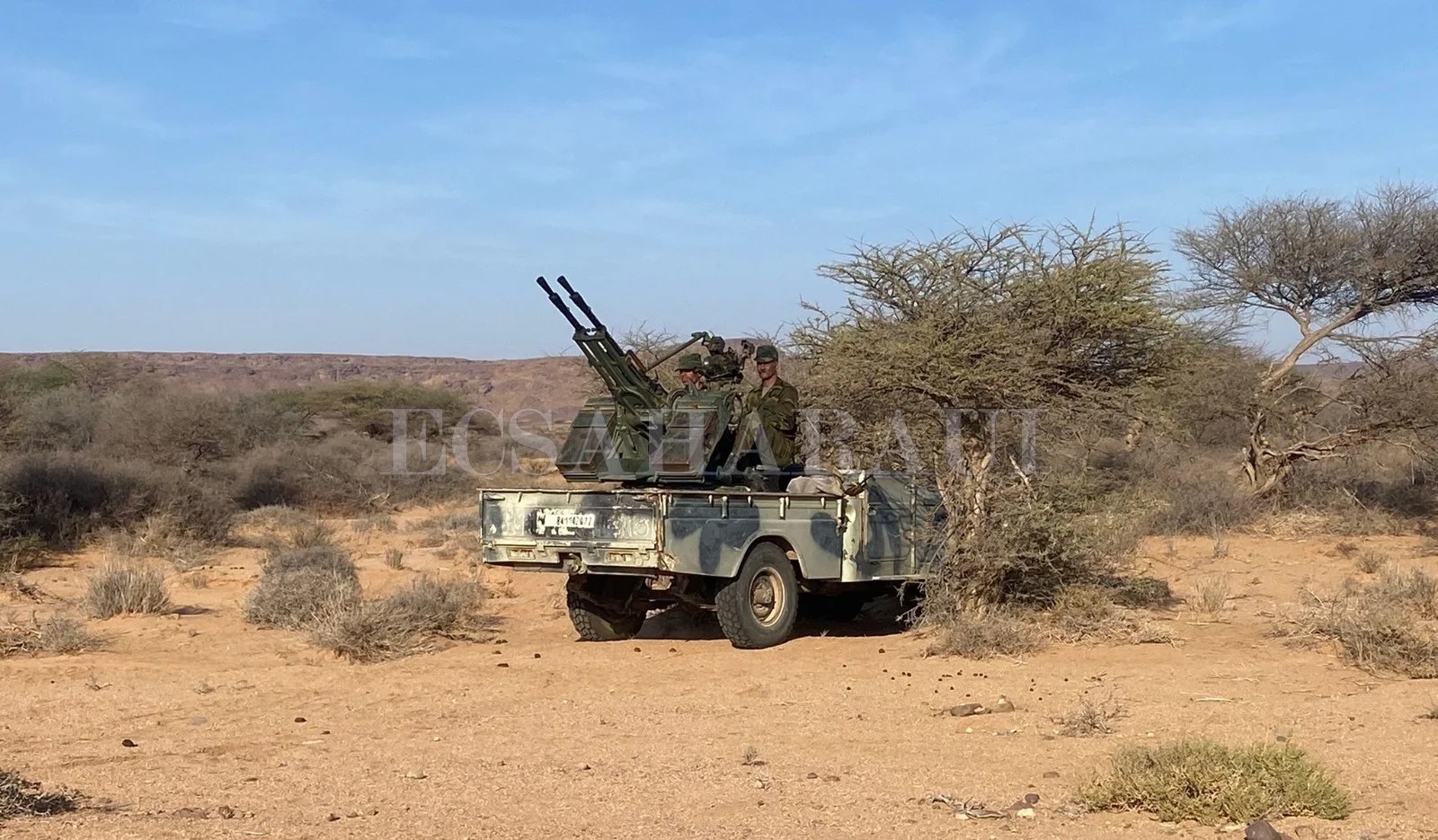 Los periodistas y fotógrafos estuvimos en todo momento protegidos por los soldados saharauis que iban a bordo de 3 vehículos militares vigilando, señalando las zonas por donde quedaba terminantemente prohibido circular a los civiles y dando explicaciones en todo momento sin separarse del grupo. En este contexto, el jefe de la Cuarta Región Militar saharaui de Mheriz, Mohamed Ulaida, nos aseveró subrayando el deseo general saharaui de que »la solución llegue por la vía militar tras la decepcionante vía diplomática». El mismo punto de vista compartido por su colega de la Sexta Región Militar saharaui situada en Mahbes.