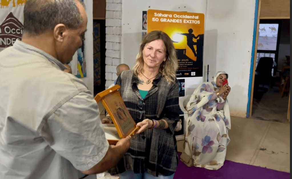 Recordó que la vinculación de Carlos Cano con el Sáhara “era su forma de mirar al mundo con ternura hacia quienes sufren, con respeto hacia quienes luchan y con esperanza hacia quienes sueñan”. Sus palabras fueron traducidas al hasania durante el acto por Salambuha.