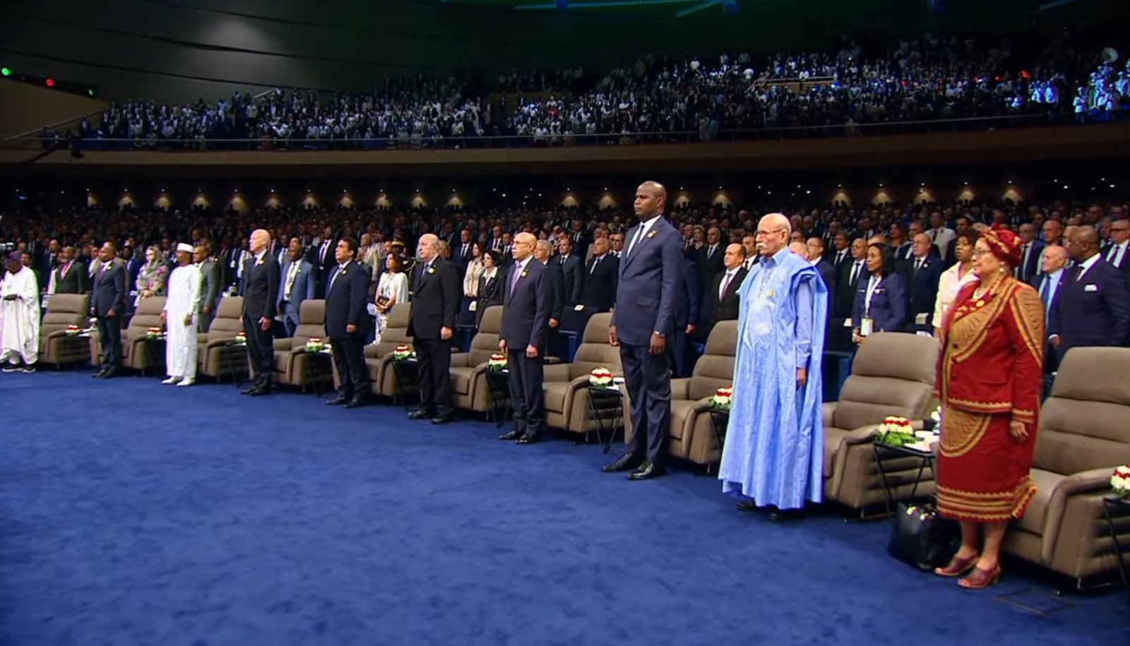 La inauguración oficial fue presidida por el jefe de Estado argelino, Abdelmadjid Tebboune, en el Centro Internacional de Convenciones Abdelatif Rahal. El acto, acompañado por los himnos de Argelia y de África, contó con la presencia de un importante número de mandatarios. Entre ellos destacan el presidente de Chad, Mahamat Idriss Déby Itno; el presidente de Túnez, Kais Saied; el presidente de Mauritania, Mohamed Ould Cheikh El-Ghazouani; el presidente del Consejo Presidencial libio, Mohamed Younes El-Menfi; el presidente de la República Árabe Saharaui Democrática, Brahim Ghali; así como figuras históricas de la integración continental como el ex presidente de Nigeria, Olusegun Obasanjo, presidente consultivo de la IATF, y el ex presidente de Níger, Mahamadou Issoufou, designado “Campeón del AfCFTA”.