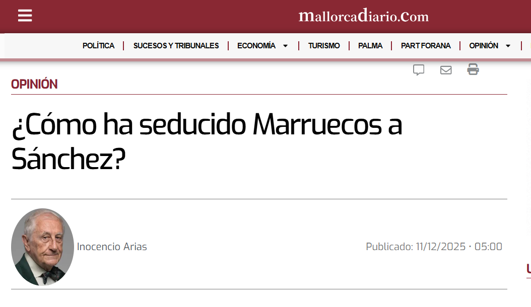 El diplomático Inocencio F. Arias cuestiona en Mallorca Diario la falta de transparencia del Gobierno en su relación con Marruecos y el impacto del giro de Pedro Sánchez sobre el Sáhara Occidental. En su análisis, advierte de que la interpretación marroquí de la reciente resolución 2797 y la ausencia de contrapartidas para España abren la puerta a futuros contenciosos en Ceuta, Melilla y Canarias. Una reflexión que, apoyándose en las advertencias del periodista Ignacio Cembrero, sitúa de nuevo el conflicto saharaui en el centro de la política exterior española.