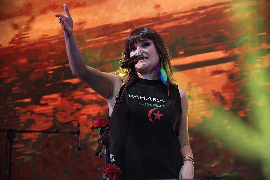 La primera gran alegría que nos llevamos con María fue cuando apareció en su visita al programa de Operación Triunfo luciendo nuestra camiseta. Este viernes, también nos llevamos un subidón enorme al verla salir al escenario con ella puesta. Sus canciones llegaban a todos los asistentes desde una voz que, con su camiseta, también gritaba SÁHARA LIBRE.