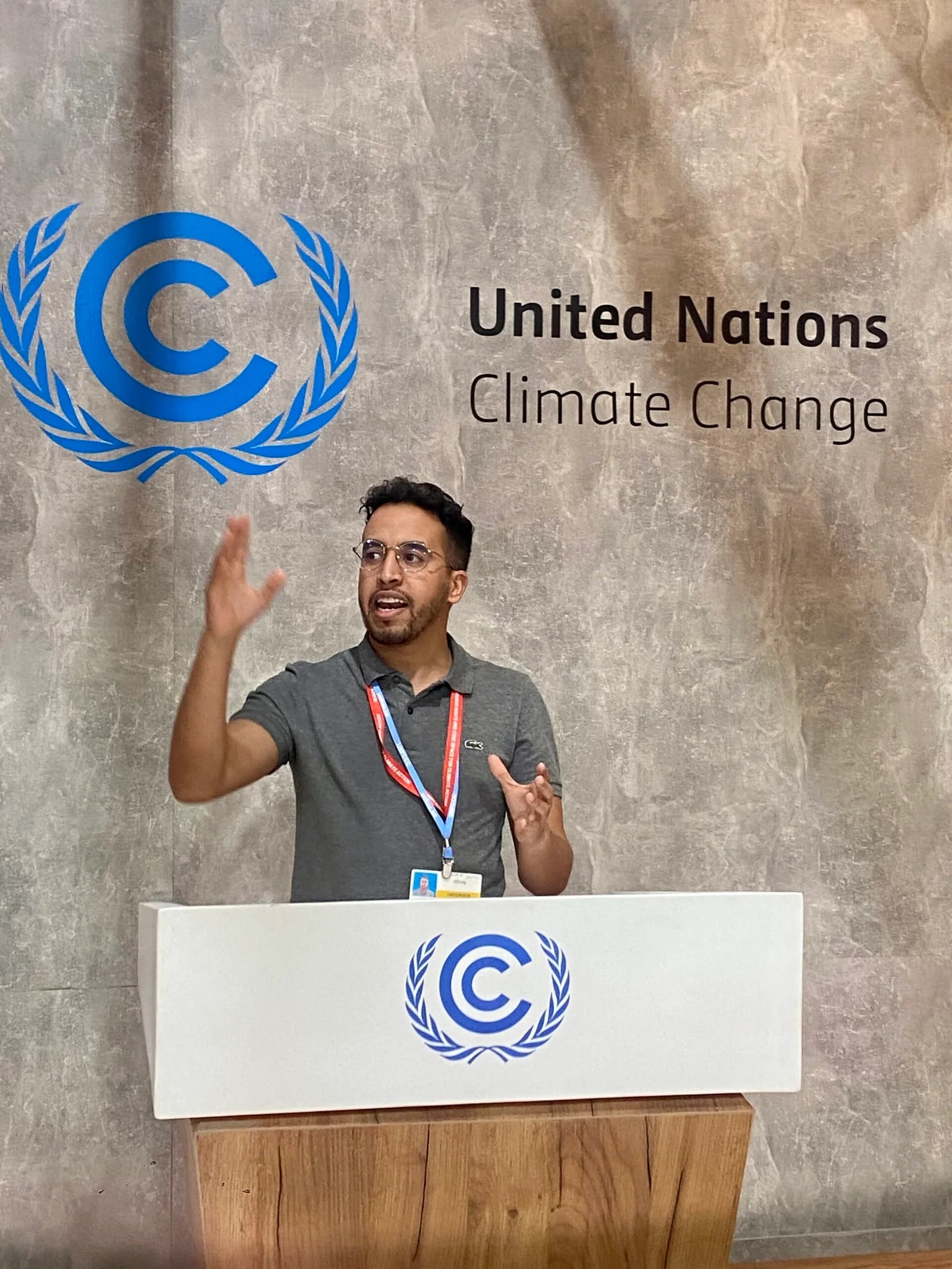 Foto: El saharaui Ahmedna Abdi M’barek en la anterior COP27. – Abdi M’barek