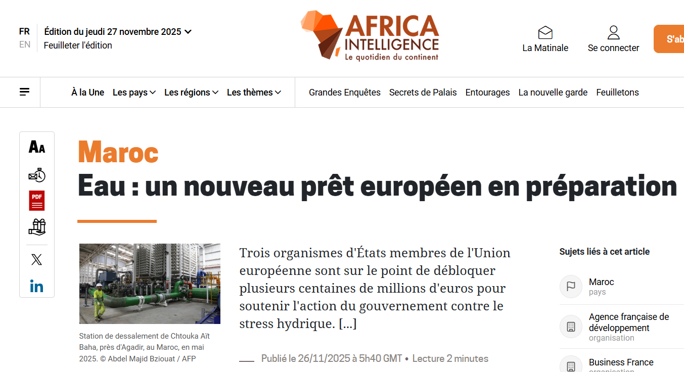 En definitiva, este préstamo de casi 350 millones de euros no es sólo una operación técnica: es un gesto estratégico, que consolida la relación entre Marruecos y varias potencias europeas en un momento en que la política hídrica del reino se convierte en un eje clave de su proyección regional. Europa vuelve a invertir en Marruecos, y lo hace desde la lógica habitual: combinación de interés económico, cálculo geopolítico y una cooperación que sigue siendo un instrumento central de su política exterior.