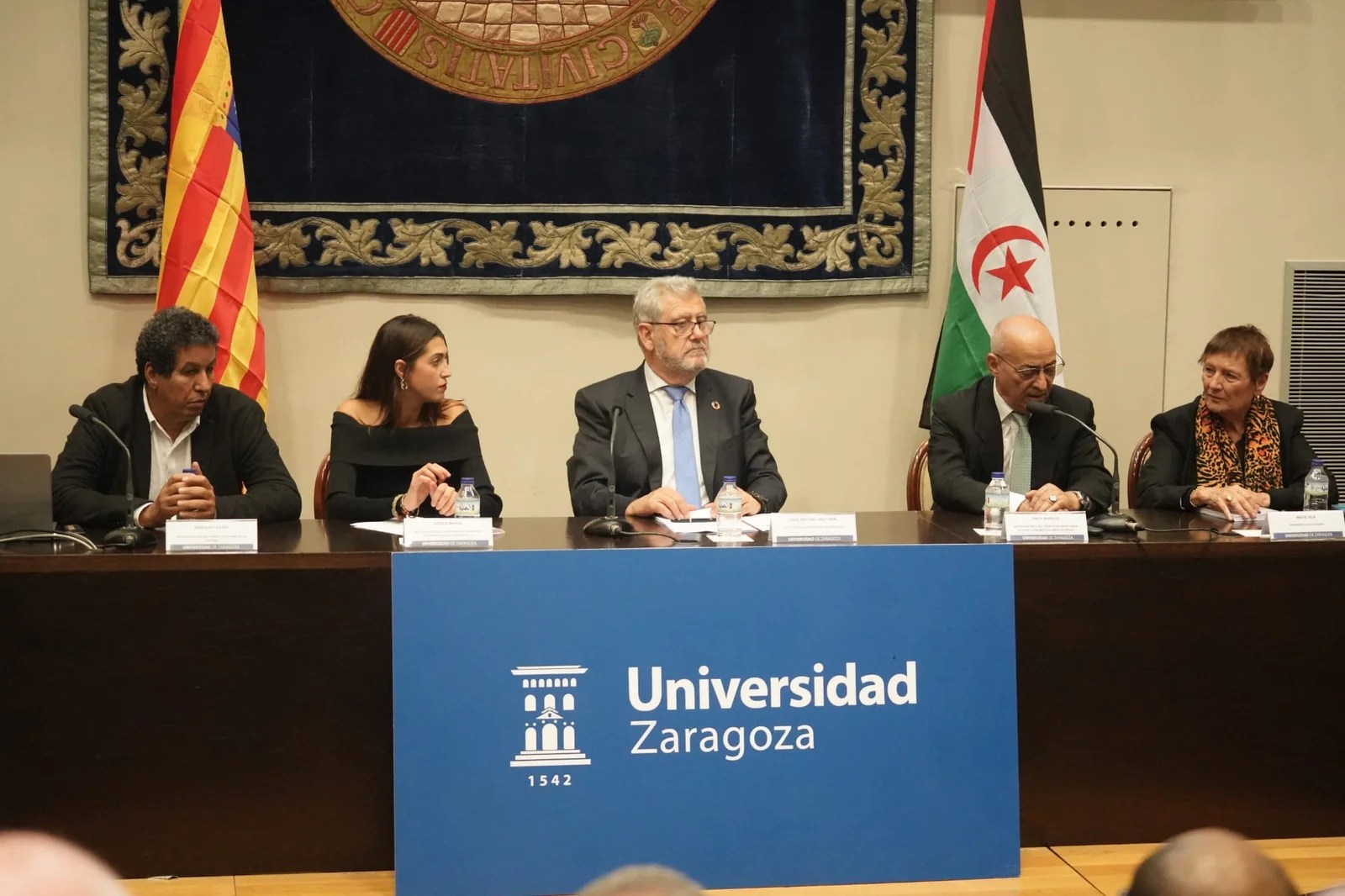 El acto comenzó con las palabras de bienvenida del rector de la Universidad de Zaragoza, Antonio Mayoral, quien destacó la importancia de la universidad como «casa del conocimiento» y foro para el debate sobre temas de relevancia, como el derecho a la autodeterminación de los pueblos. Durante su intervención, subrayó el compromiso de la universidad en apoyar espacios de reflexión y aprendizaje que aborden temas de justicia social y derechos humanos. Mayoral destacó además dos proyectos en los que la universidad colabora desde hace años, señalando su relevancia para el desarrollo del pueblo saharaui.