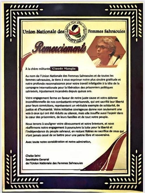 Origen: La UNMS reconoce labor de la activista francesa Claude Mangin Asfari | Sahara Press Service (SPS)