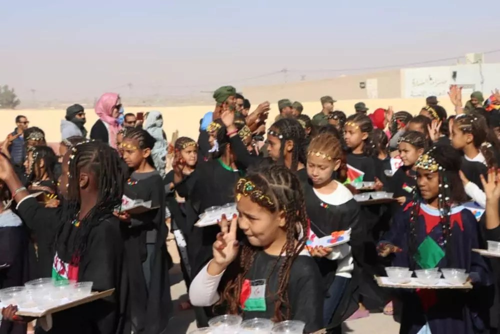 A los desfiles de maternoinfantiles, escolares y universitarios con los colores nacionales siguieron los de las diferentes dairas y servicios regionales de la wilaya. Por la mañana también se inauguraron exposiciones tradicionales que permitieron a la delegación extranjera hacer un recorrido por las jaimas para ver las herramientas y equipos tradicionales que los saharauis tenían anteriormente en su vida diaria.