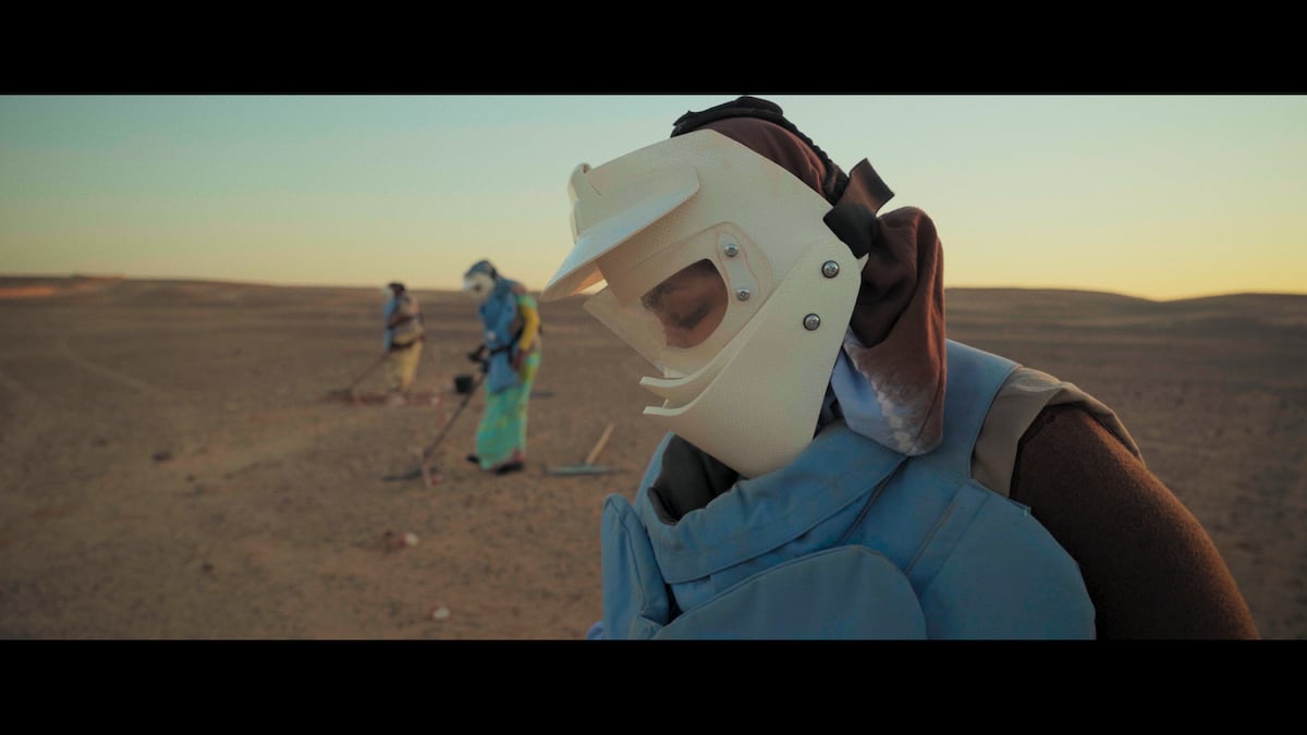 Tras la invasión marroquí de 1975, una parte del pueblo saharaui fue desplazada y se refugió en campamentos en Tinduf (Argelia), mientras otra permaneció en los territorios ocupados y una tercera se dispersó en la diáspora. En 2019, un año antes de que se reanudara el conflicto que había cesado en 1991, Fatimetu Bucharaya creó SMAWT, un grupo conformado solo por mujeres para detectar minas antipersona y concienciar a sus vecinos sobre su peligro. El corto documental Disonancia (2025), de la directora Raquel Larrosa (Huesca, 34 años), cuenta su historia y también la de Aicha Babait y Ndoruha Farkuh, periodista y arqueóloga respectivamente, que se sumaron al trabajo por falta de oportunidades laborales.