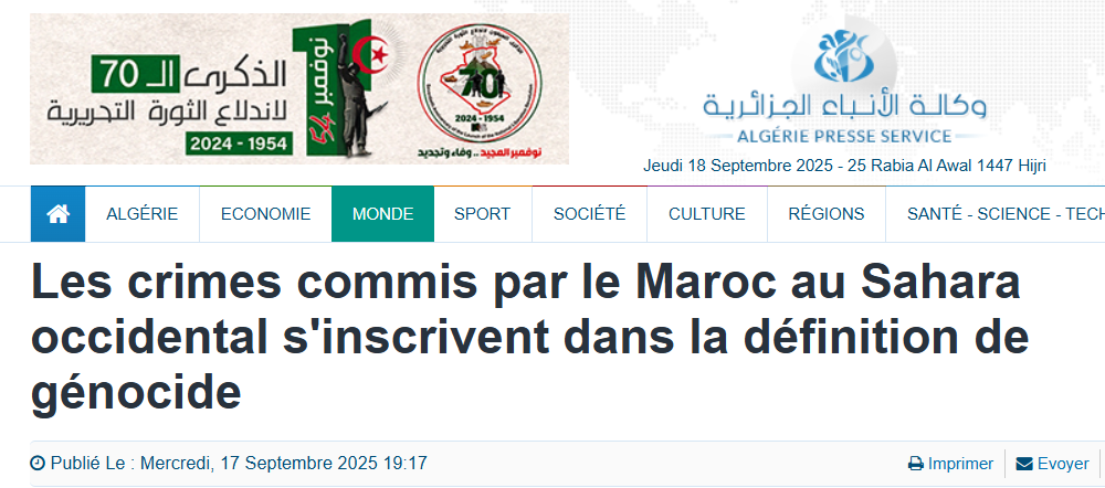 Dans un article publié sur la plateforme «N’oubliez pas le Sahara occidental» sous le titre «Le génocide sahraoui n’est pas une métaphore: c’est une réalité juridique constatée par un tribunal européen», l’écrivaine espagnole souligne qu’en avril 2015, un arrêt de l’Audience nationale espagnole (un tribunal espagnol à compétence nationale) reconnaissait ce que le peuple sahraoui dénonçait depuis des décennies : «le Maroc a commis des crimes qui s’inscrivent dans la définition de génocide».
