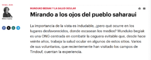 En un contexto marcado por medio siglo de ocupación ilegal del Sáhara Occidental y por uno de los exilios más prolongados del mundo, la salud ocular del pueblo saharaui se convierte en algo más que una cuestión sanitaria: es una cuestión de dignidad y de derechos. Así lo muestra el extenso reportaje publicado por NAIZ bajo el título “Mirando a los ojos del pueblo saharaui”, dedicado al trabajo que desde hace dos décadas desarrolla la ONG Munduko begiak (Ojos del Mundo) en los campamentos de población refugiada saharaui de Tindouf, en Argelia.