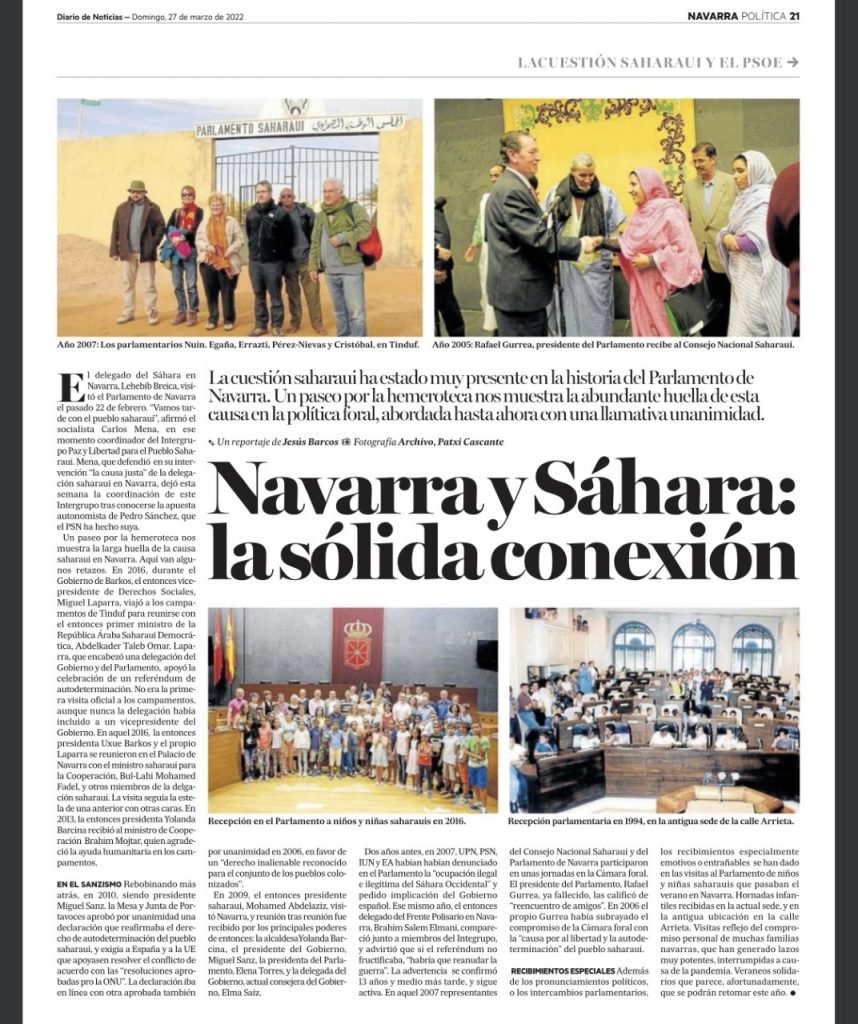 La cuestión saharaui ha estado muy presente en la historia del Parlamento de Navarra. Un paso por la hemeroteca muestra la abundante huella de esta causa en la política foral, abordada hasta ahora con una llamativa unanimidad.