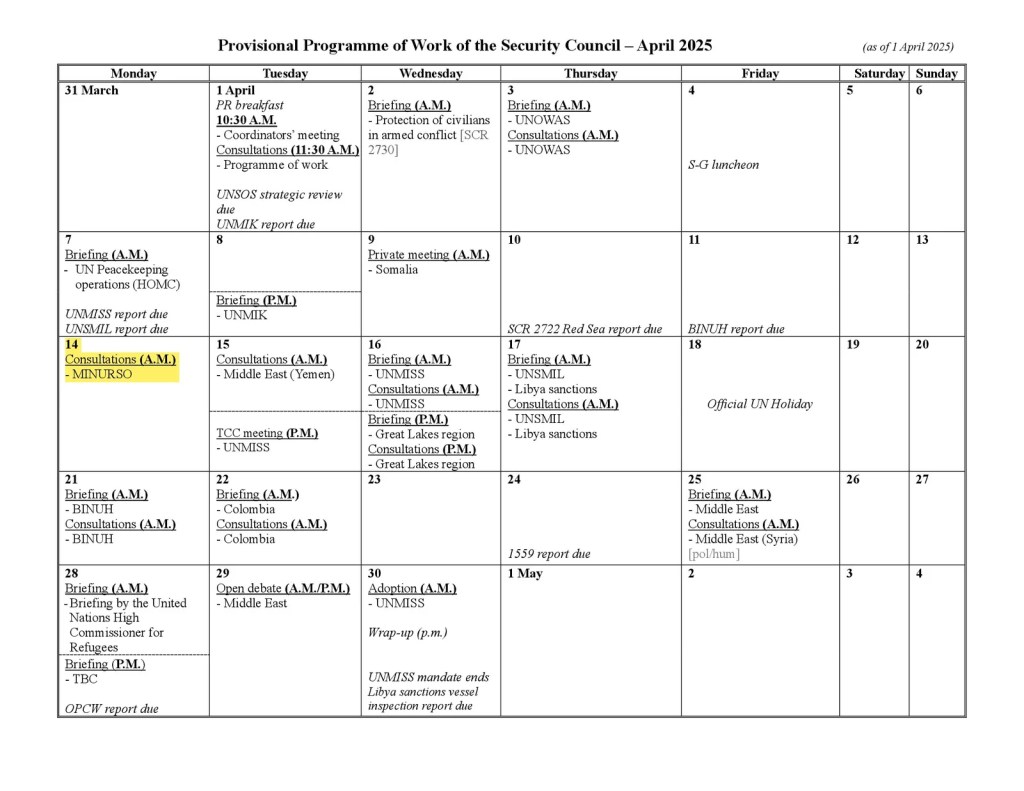La atención se centra ahora en el 14 de abril, cuando los miembros del Consejo de Seguridad tendrán la oportunidad de examinar de cerca los acontecimientos sobre el terreno y discutir los próximos pasos para alcanzar una solución política final al conflicto del Sáhara Occidental.
