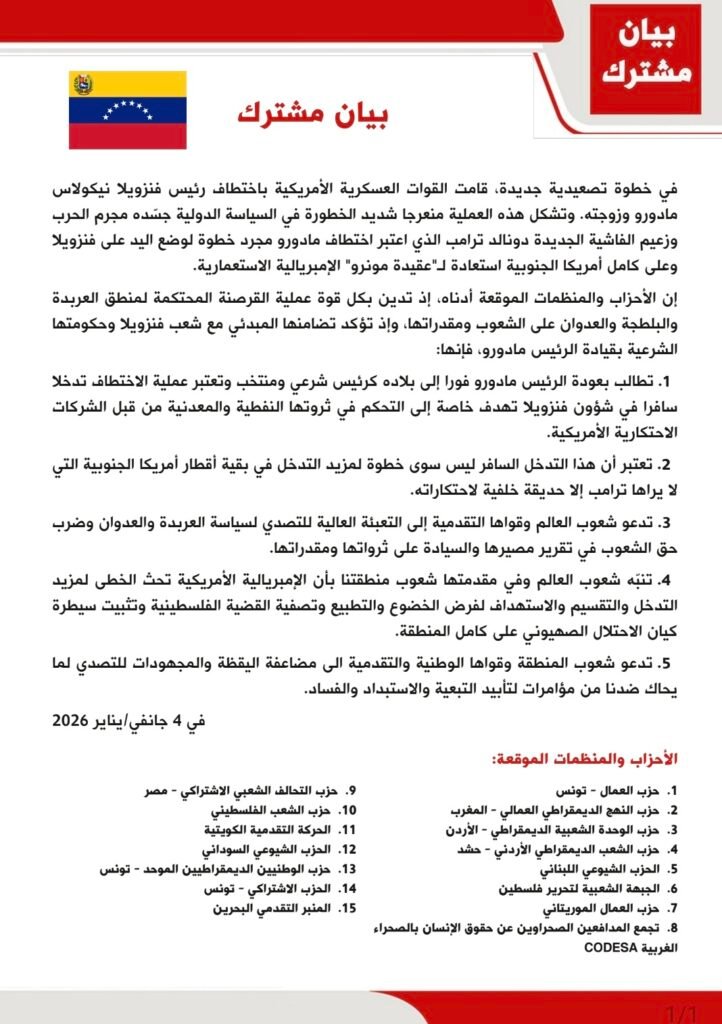 Comunicado conjunto ante una escalada imperial sin precedentes, firmado por CODESA y otras organizaciones árabes y africanas