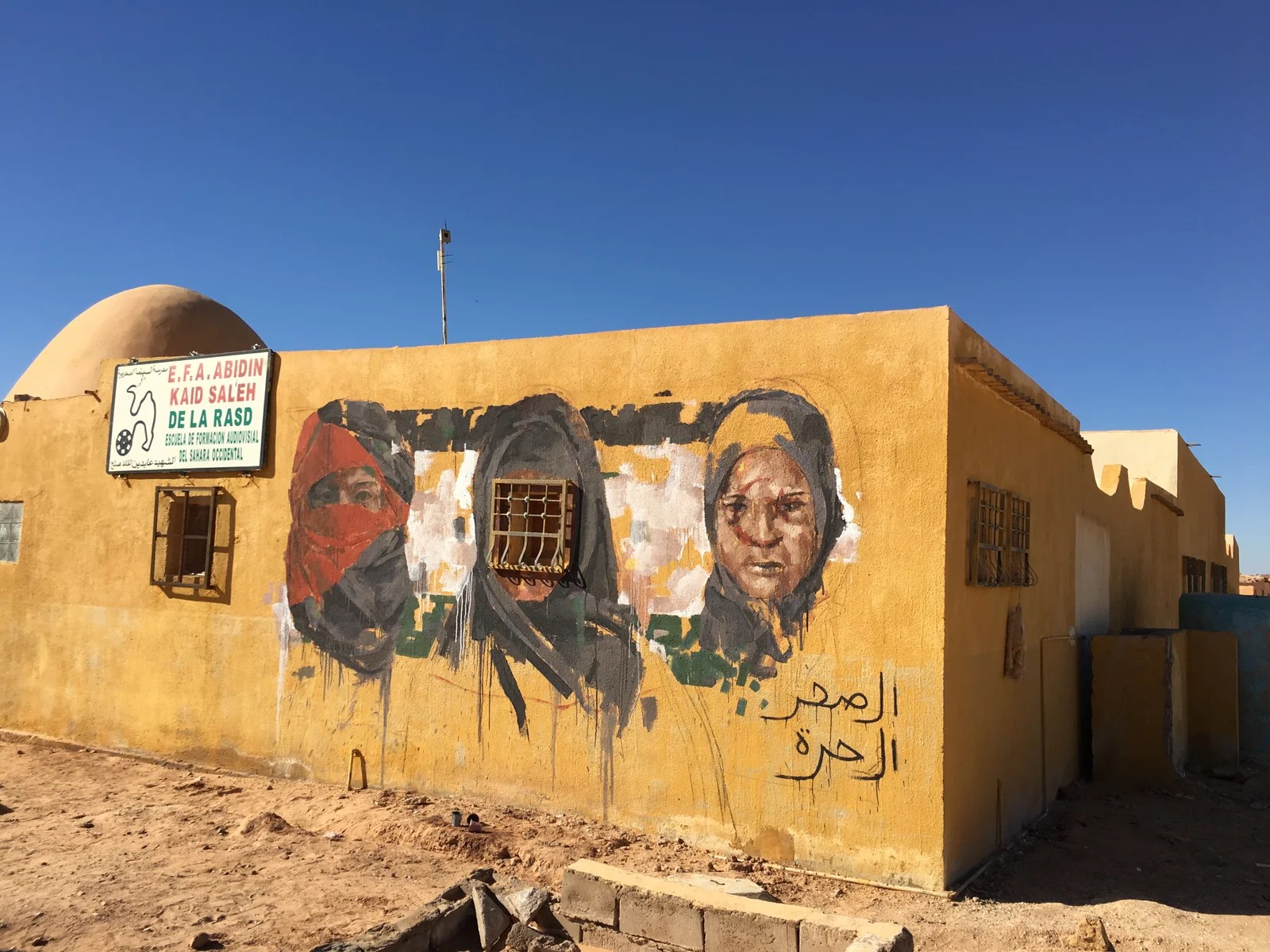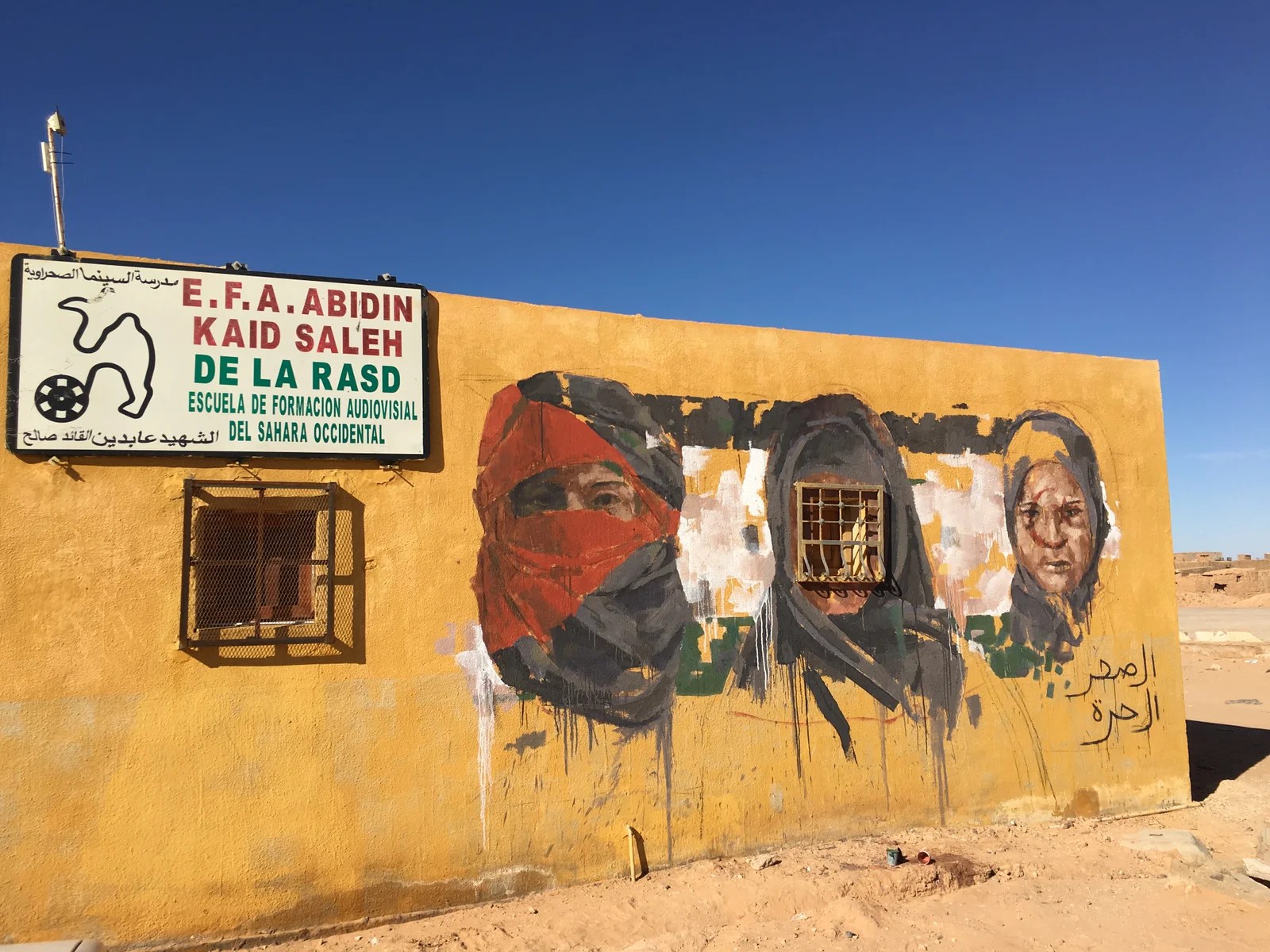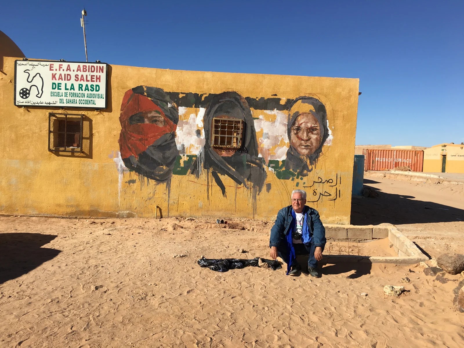 En las fotos, el gran grafitero Gonzalo Borondo trabajando en la fachada de la Escuela de Cine del Sahara… ¡el grafiti ya se lo ha llevado el siroco, la arena y las inclemencias del día a día en los campamentos de refugiados saharauis! Era diciembre del 2015 ???