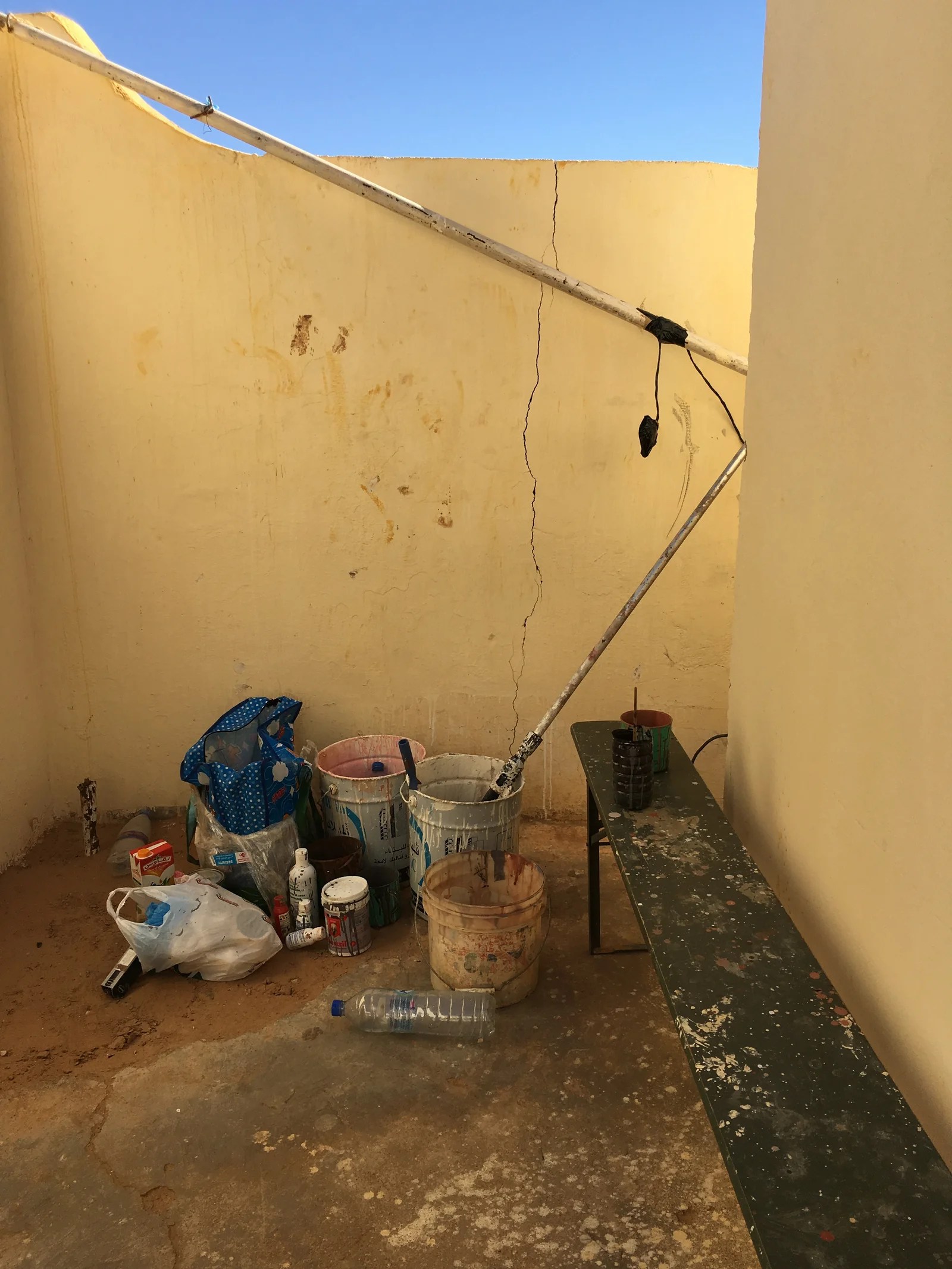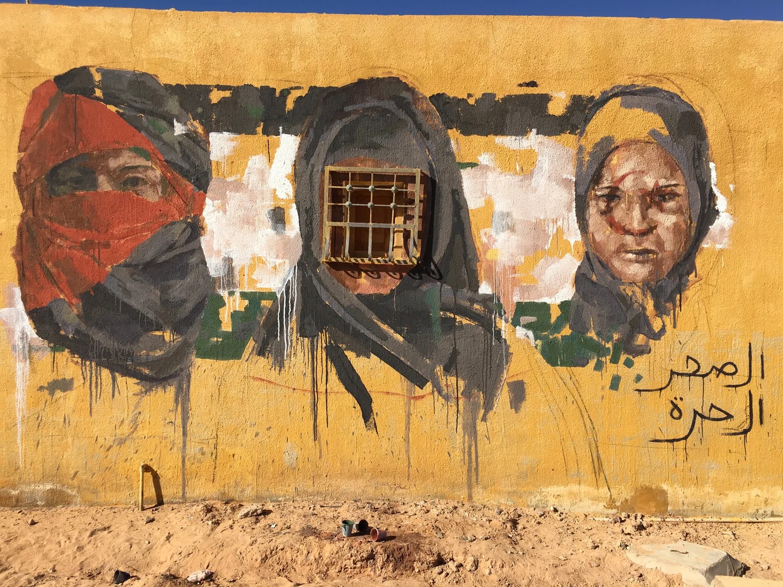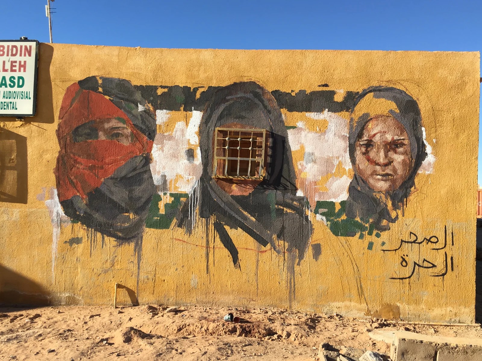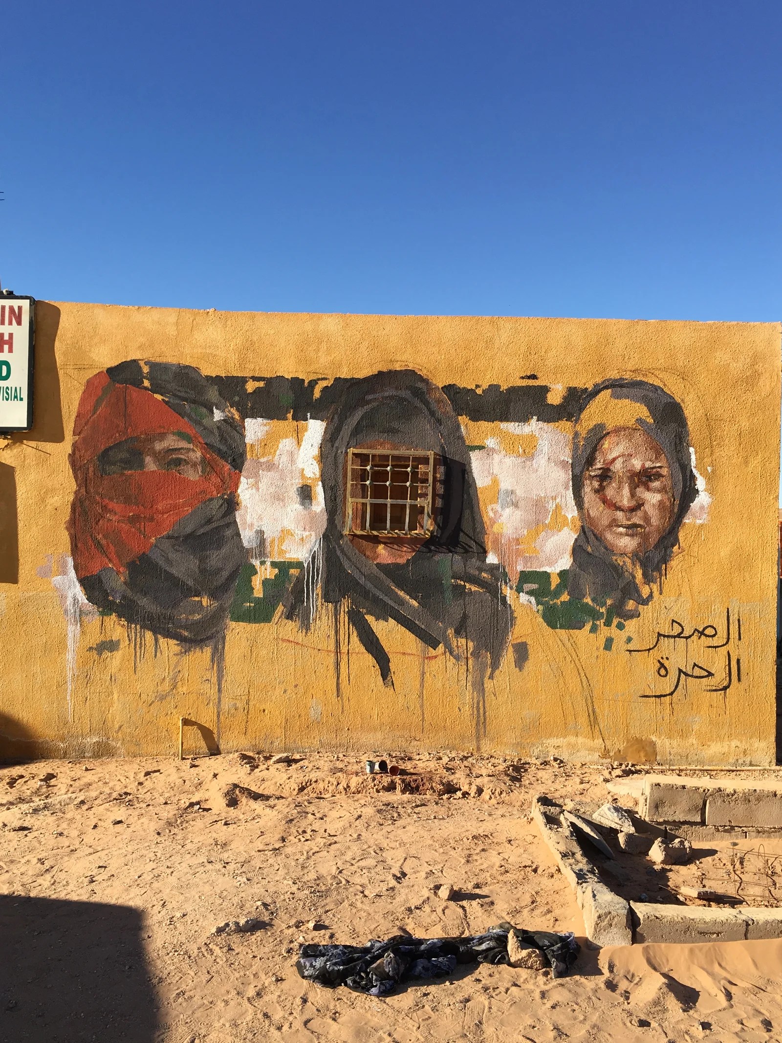 En las fotos, el gran grafitero Gonzalo Borondo trabajando en la fachada de la Escuela de Cine del Sahara… ¡el grafiti ya se lo ha llevado el siroco, la arena y las inclemencias del día a día en los campamentos de refugiados saharauis! Era diciembre del 2015 ???