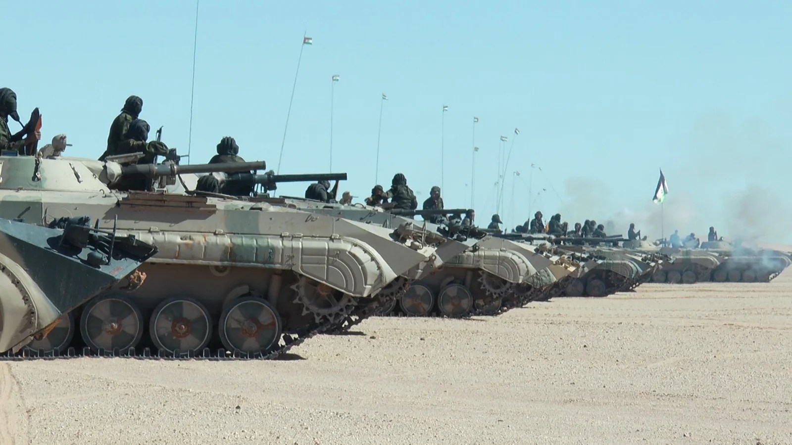 Las unidades del Ejército de Liberación Popular Saharaui (ELPS) continuaron hoy sus ataques contra las bases de las fuerzas de ocupación marroquí posicionadas a lo largo del Muro de la Vergüenza. #SaharaOccidental pic.twitter.com/rbK4hEJiRM