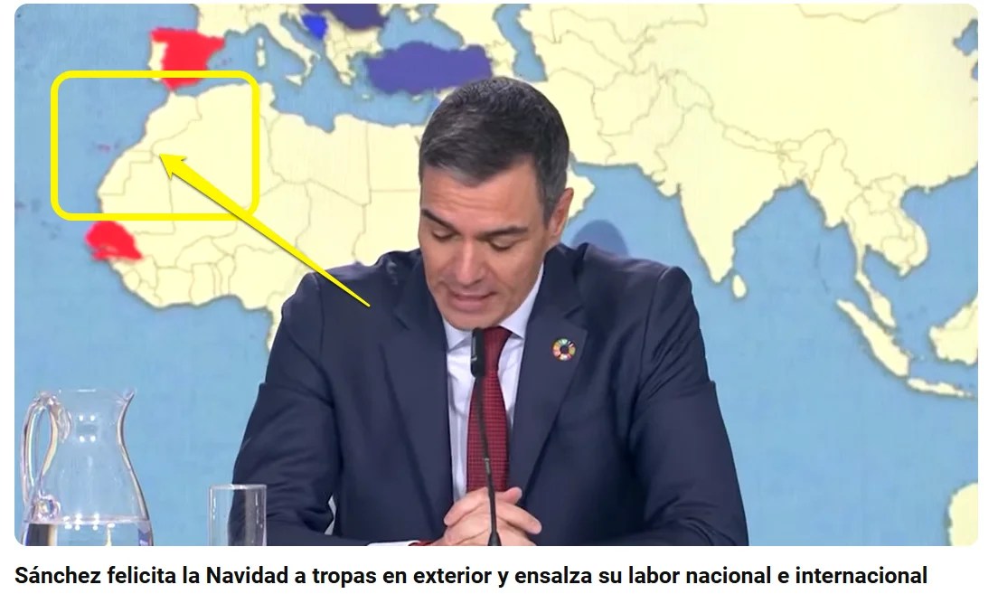 Pedro Sánchez envía mensaje navideño a las Fuerzas Armadas españolas en el exterior con un mapa donde se reconoce el Sáhara Occidental independiente de Marruecos