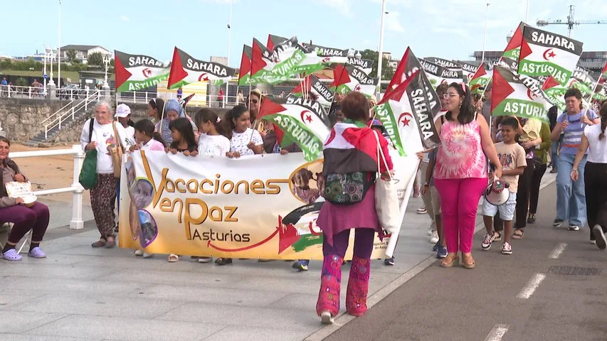 Una marcha que también ha sido la despedida del Programa Vacaciones en Paz, que este verano ha traído a Asturias a un centenar de menores de los campamentos de refugiados en Tinduf, en Argelia.