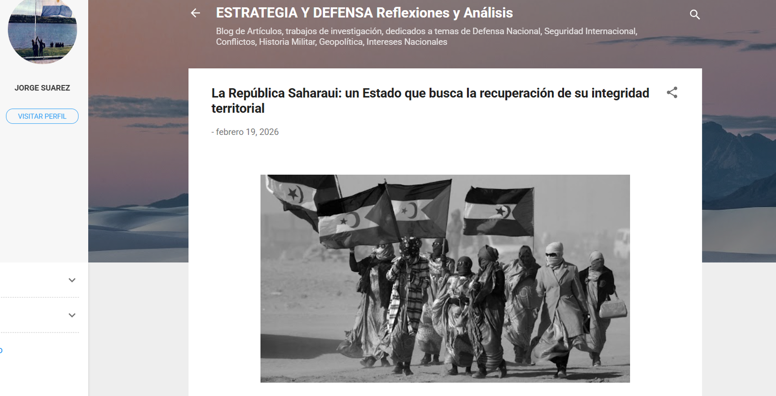 El artículo del Dr. Jorge Alejandro Suárez Saponaro, «La República Saharaui: un Estado que busca la recuperación de su integridad territorial», ofrece un repaso sólido y bien estructurado del marco jurídico del Sáhara Occidental y de la naturaleza estatal de la República Árabe Saharaui Democrática. Recorre con precisión los fundamentos esenciales: la Resolución 1514 (XV), el dictamen de la Corte Internacional de Justicia de 1975, la ilegalidad de los Acuerdos de Madrid y la aplicación del Derecho Internacional Humanitario a una situación de ocupación. Como recordatorio doctrinal, el texto es riguroso y necesario.