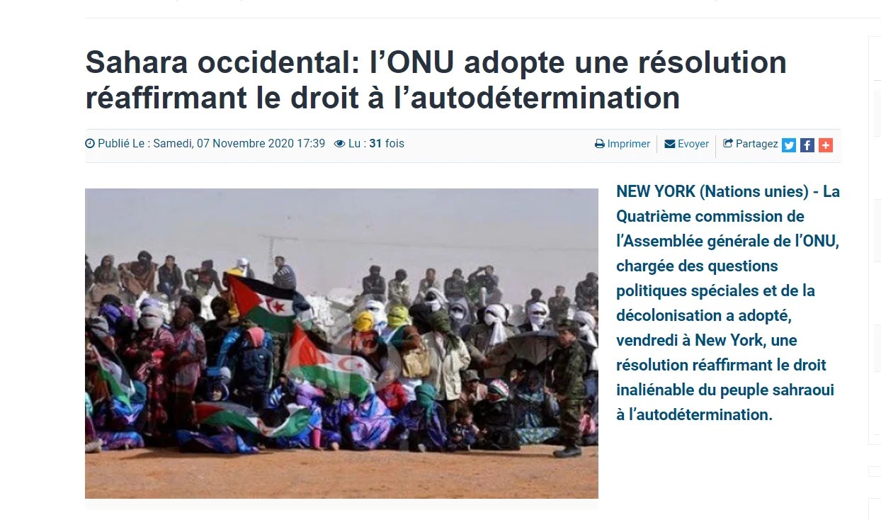 Ce texte de la Commission des questions politiques spéciales et de la décolonisation intervient au lendemain de l’adoption par le Conseil de sécurité de sa résolution 2548 (2020) du 30 octobre 2020, prorogeant pour une durée d’un an le mandat de la MINURSO, appelant les deux parties au conflit, le Maroc et le Front Polisario, à reprendre les négociations sous les auspices du Secrétaire général, sans conditions préalables et de bonne foi, afin de parvenir à une solution politique juste, durable et mutuellement acceptable qui permette l’autodétermination du peuple du Sahara occidental.