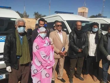La Ministra de Salud Pública, Sra. Jira Bulahi, , recibió 04 nuevas ambulancias concedidas por el Alto Comisionado para los Refugiados y la ONG Triángulo, en presencia del Presidente de la Media Luna Roja Saharaui, Sr. Yahya Buhabeini, y jefe del Mecanismo Nacional para la Prevención del Coronavirus y algunos funcionarios del Ministerio.