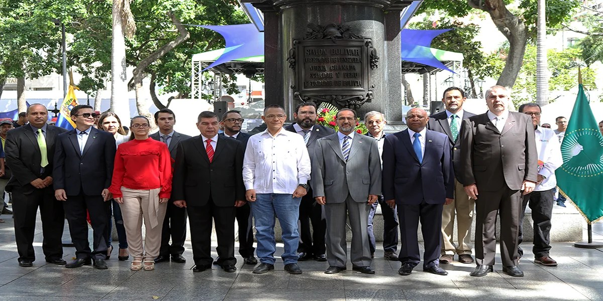 El viceministro de Relaciones Exteriores para África, Yuri Pimentel, y el ministro del Poder Popular para la Cultura, Ernesto Villegas, este sábado, celebraron la Semana Mundial de África en la República Bolivariana de Venezuela, con una ofrenda floral ante la estatua ecuestre del Libertador Simón Bolívar en la Plaza Bolívar de Caracas.